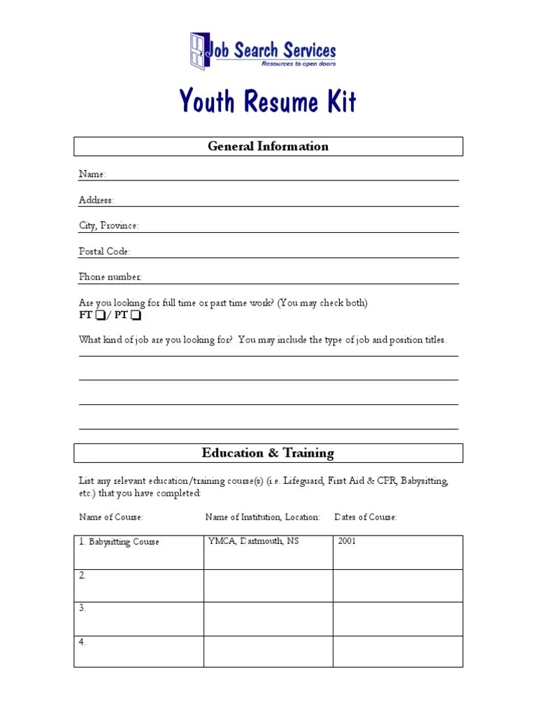 Resume Worksheet Printable Template Business PSD, Excel, Word, PDF