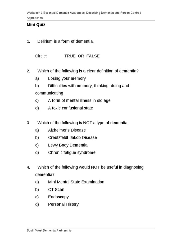 Quiz Dementia (True Or False) Questions Docest
